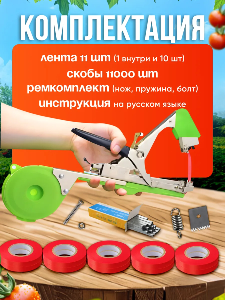 Изготовленный из прочного ABS-пластика, тапенер гарантирует долговечность и устойчивость к воздействию внешних факторов. В комплект входит набор лент и скоб, что делает его готовым к использованию сразу после покупки. С помощью тапенера для подвязывания растений вы сможете аккуратно и без повреждений зафиксировать стебли, создавая оптимальные условия для роста и развития ваших любимых цветов и овощей.